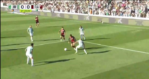 Na volta para o segundo tempo, o Mais Querido seguiu controlando a posse de bola no campo ofensivo. Aos 9′, Danilo deu bom passe para Luiz Araújo, que saiu cara a cara com o goleiro. O camisa 7 deu um toque por cima e a zaga do Juventude fez o corte para escanteio.