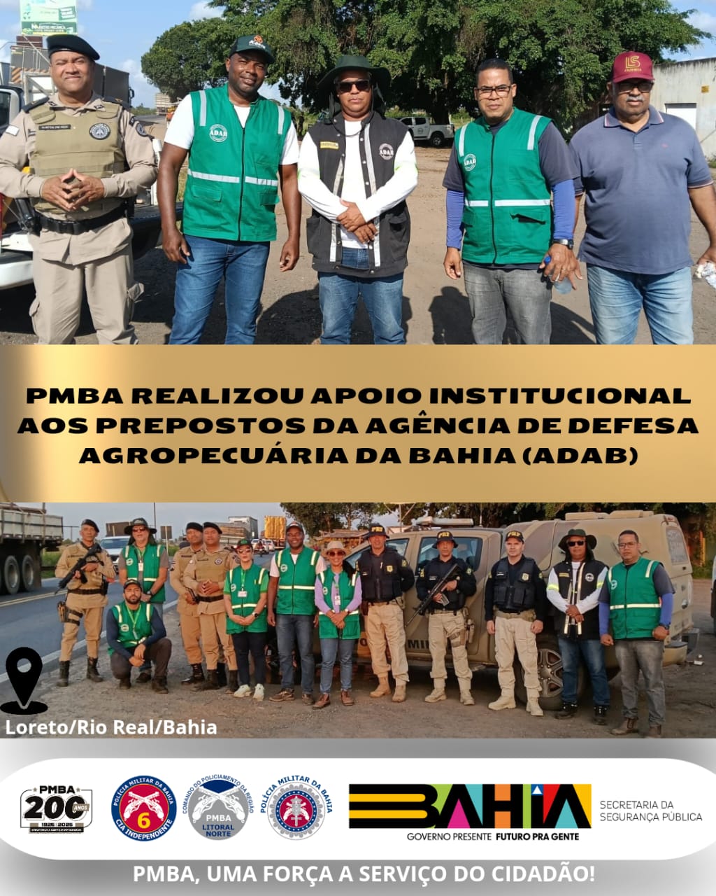Quinta-feira, 18, no Povoado Loreto, Rio Real, a PMBA, por meio da 6ª CIPM, apoiou a Agência de Defesa Agropecuária da Bahia.