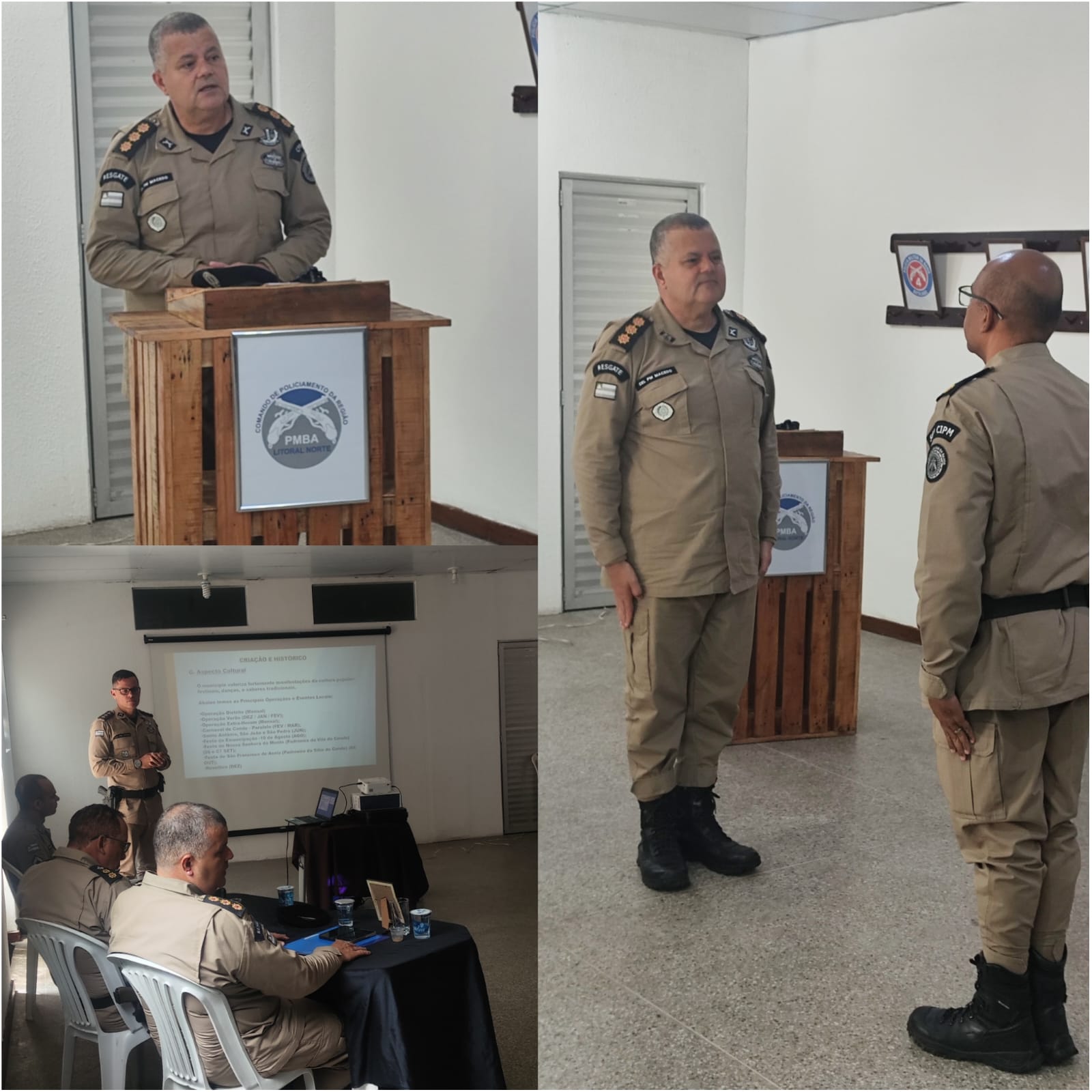Na manhã desta segunda-feira (22set), o Cel PM Macedo, comandante do Policiamento da Região do Litoral Norte (CPR-LN), presidiu a primeira reunião com os comandantes das unidades operacionais que compõem o orgânico, sendo elas: 4° BPM/Alagoinhas; 6° CIPM/Rio Real; 51° CIPM/Conde e 56° CIPM/Entre Rios, além do comandante da recém-criada Rondesp Litoral Norte.