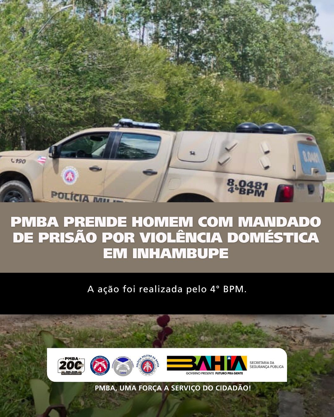Policiais militares do 4º BPM cumpriram, neste sábado (25), um mandado de prisão contra um homem acusado de violência doméstica, na cidade de Inhambupe.