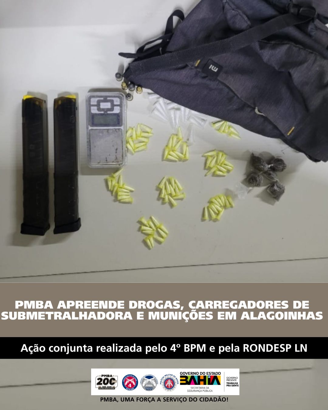 Na tarde de sábado (06), Policiais Militares do 4º BPM em ação conjunta com a RONDESP Litoral Norte apreenderam materiais provenientes do tráfico de drogas na rua Mãe Cirila, bairro Baixa da Santinha, em Alagoinhas.