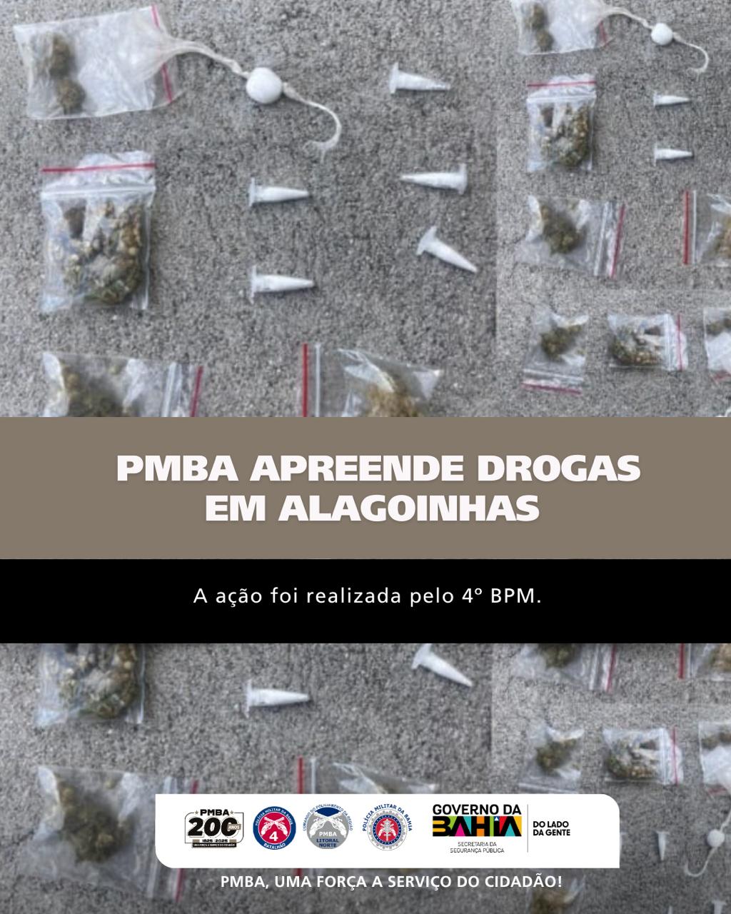 Durante rondas no bairro Barreiro, em Alagoinhas, policiais do moto patrulhamento do 4º BPM identificaram um indivíduo portando substâncias análogas à maconha e à cocaína. Em ato contínuo, o material foi apreendido, o envolvido e as substâncias foram apresentados na Delegacia de Polícia, onde foram adotadas as medidas cabíveis.
