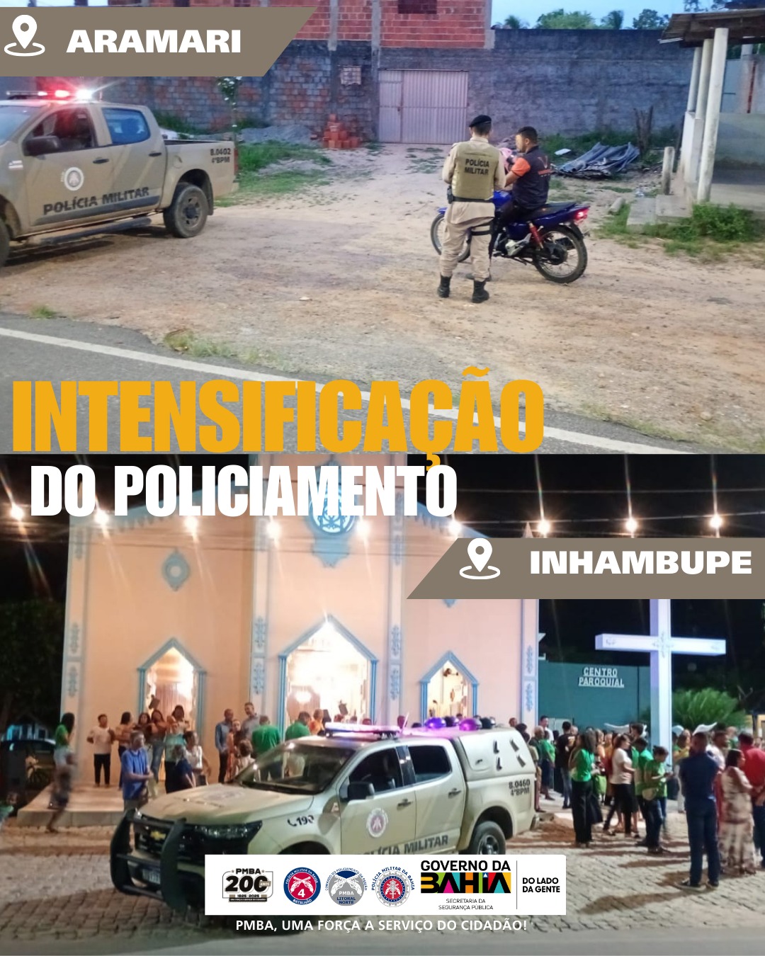 A Polícia Militar da Bahia, através do 4º Batalhão de Polícia Militar, vem intensificando o policiamento nas localidades circunvizinhas, com o objetivo de fortalecer as ações preventivas, preservar a ordem pública e ampliar a sensação de segurança da comunidade.