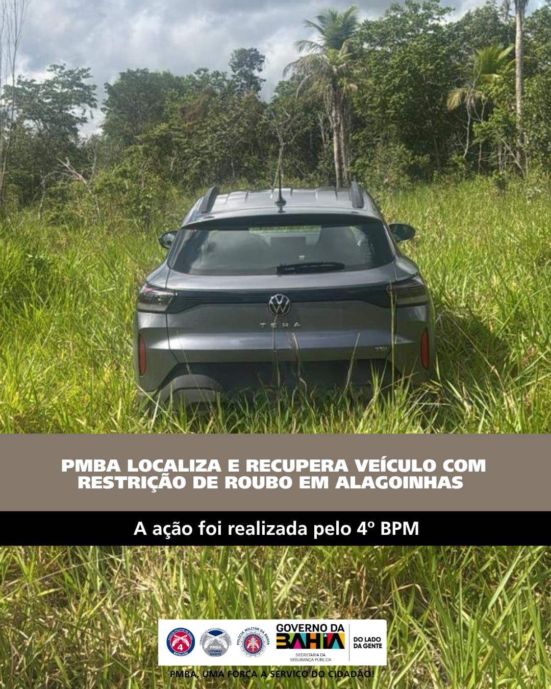 Policiais militares do 4ºBPM, recuperaram um veículo com restrição de furto/roubo na manhã de domingo (12), o veículo foi encontrado às margens da BR 101 em Alagoinhas.